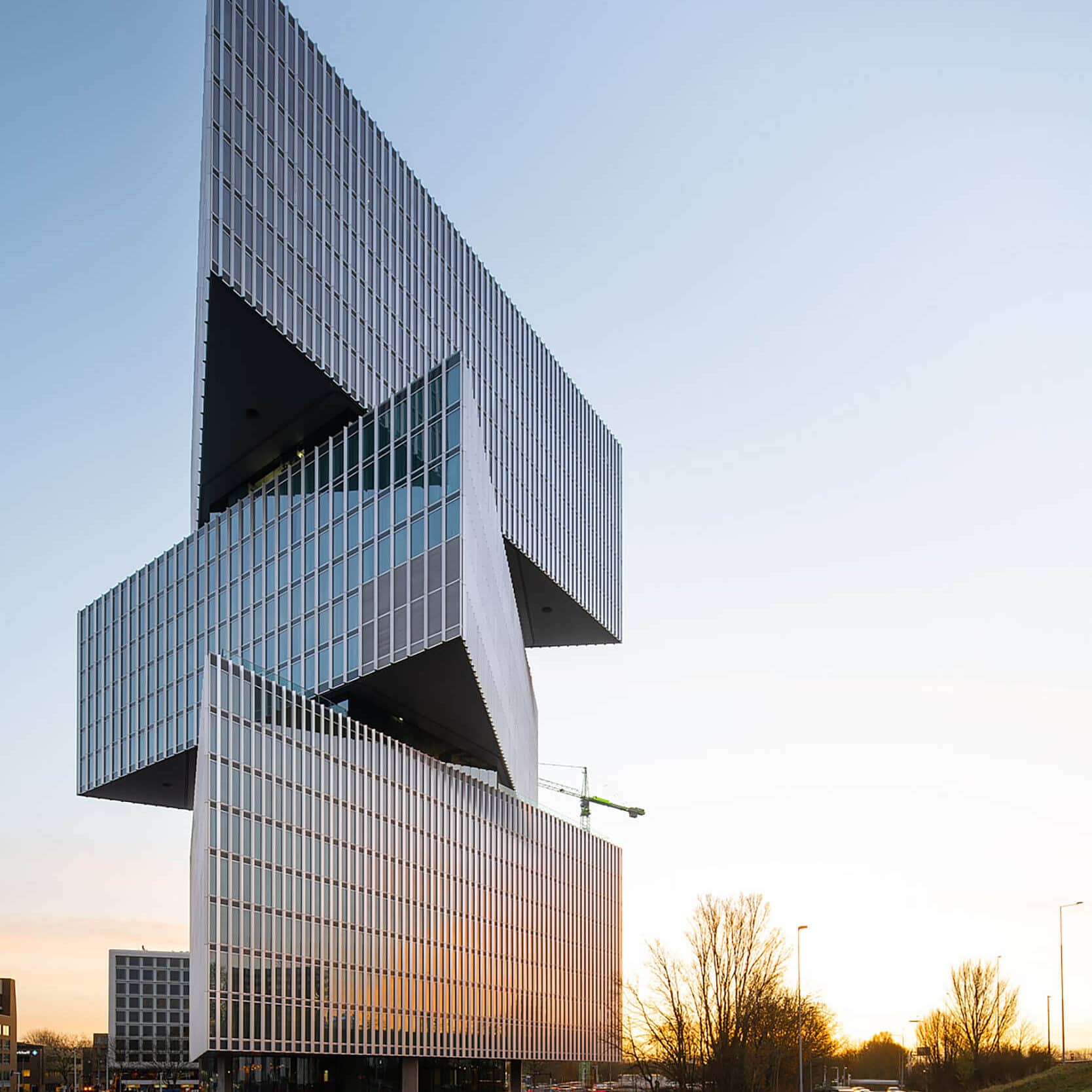Amsterdam groeit, in alle opzichten. Daar horen de juiste faciliteiten bij. Sinds het ontstaan van de Zuidas heeft Amsterdam RAI behoefte aan een vernieuwd stedelijk gezicht. Er werd een tender uitgeschreven voor de ontwikkeling van een hotel in de Groene Zoom: de driehoek tussen de RAI, A10 en Europaboulevard. Elf partijen deden mee. COD, Being Development, OMA en NH Hotel Group bundelden de krachten en werden uiteindelijk als winnaar verkozen. Het baanbrekende ontwerp met de drie karakteristieke gedraaide driehoekige volumes is afgeleid van de ooit zo typerende driehoekige reclamezuil ‘Het Signaal’ op het Europaplein.