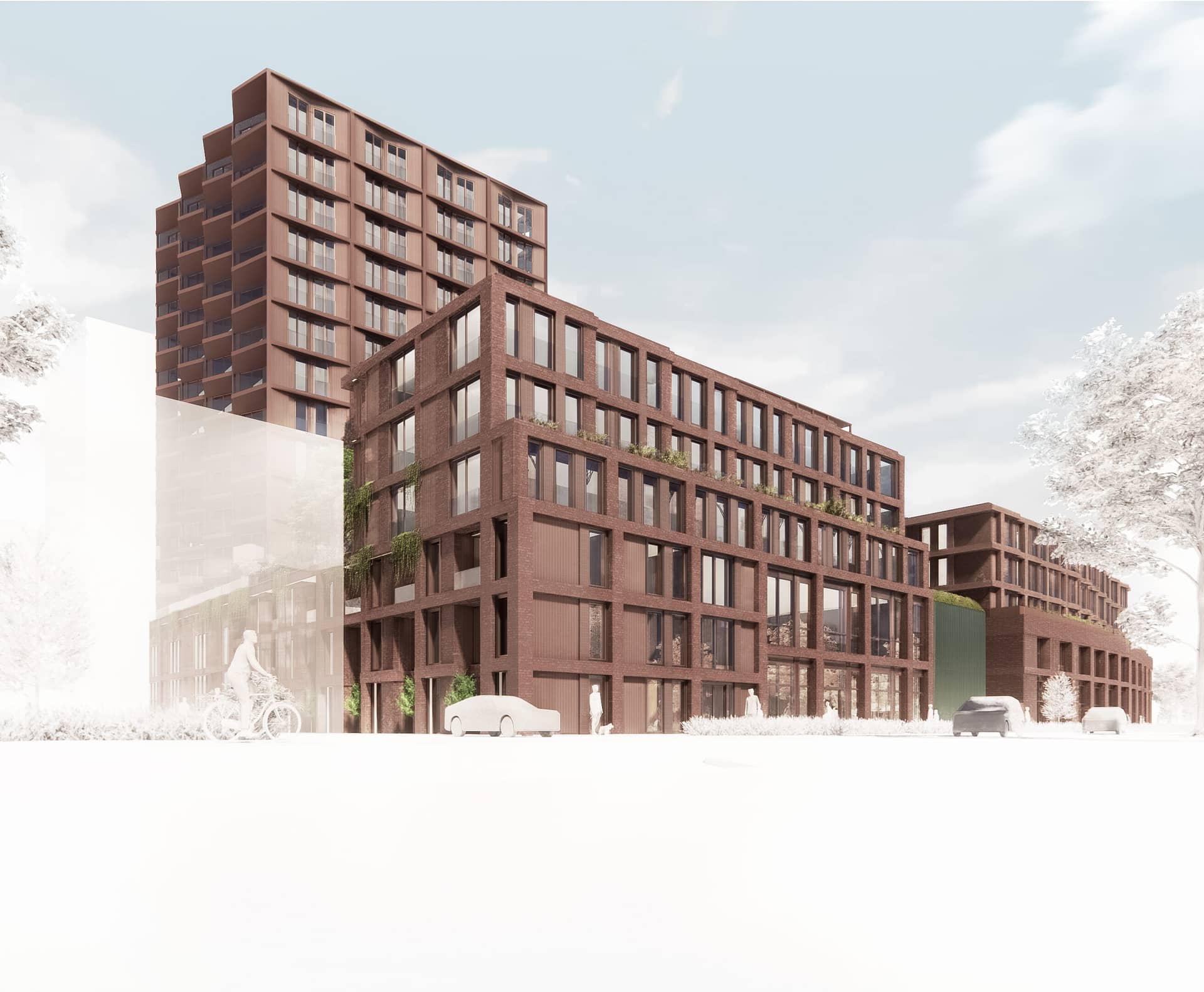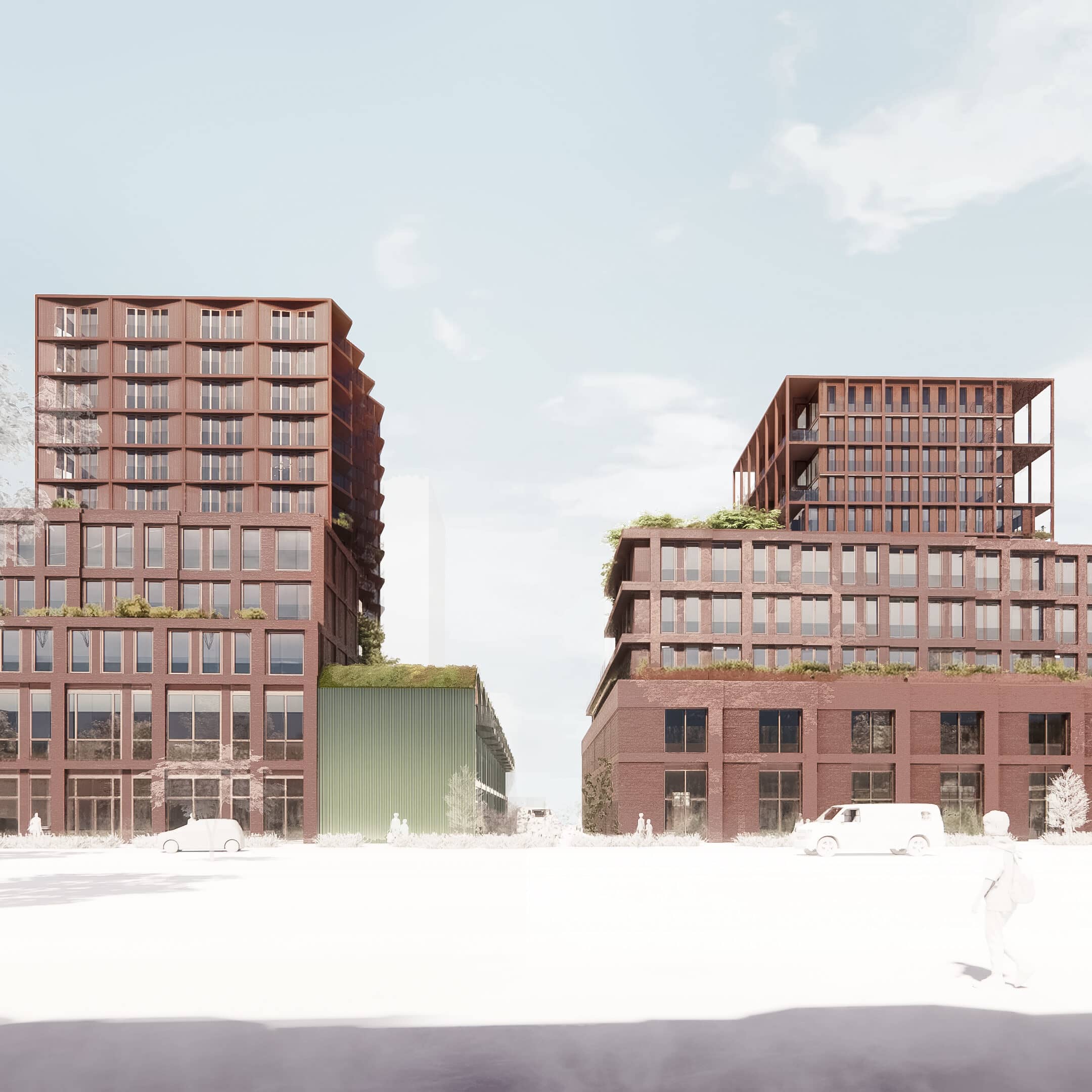 COD en VORM gaan deze plek ontwikkelen tot een gemengd woonprogramma met stedelijke voorzieningen, aan een groen stadsplein. Een plan dat naadloos aansluit op de bestaande wijk en fungeert als hoeksteen van het Hamerkwartier. Het plan draagt bij aan een inclusieve stad met ca. 230 woningen in een mix van sociale huurwoningen (30%), middeldure huur (40%) en vrije sectorwoningen (30%) en biedt een antwoord op het woningtekort. Het ontwerp bestaat uit twee blokken met elk een basement van circa 10 meter hoog, waarop twee woongebouwen van 45 meter verrijzen.