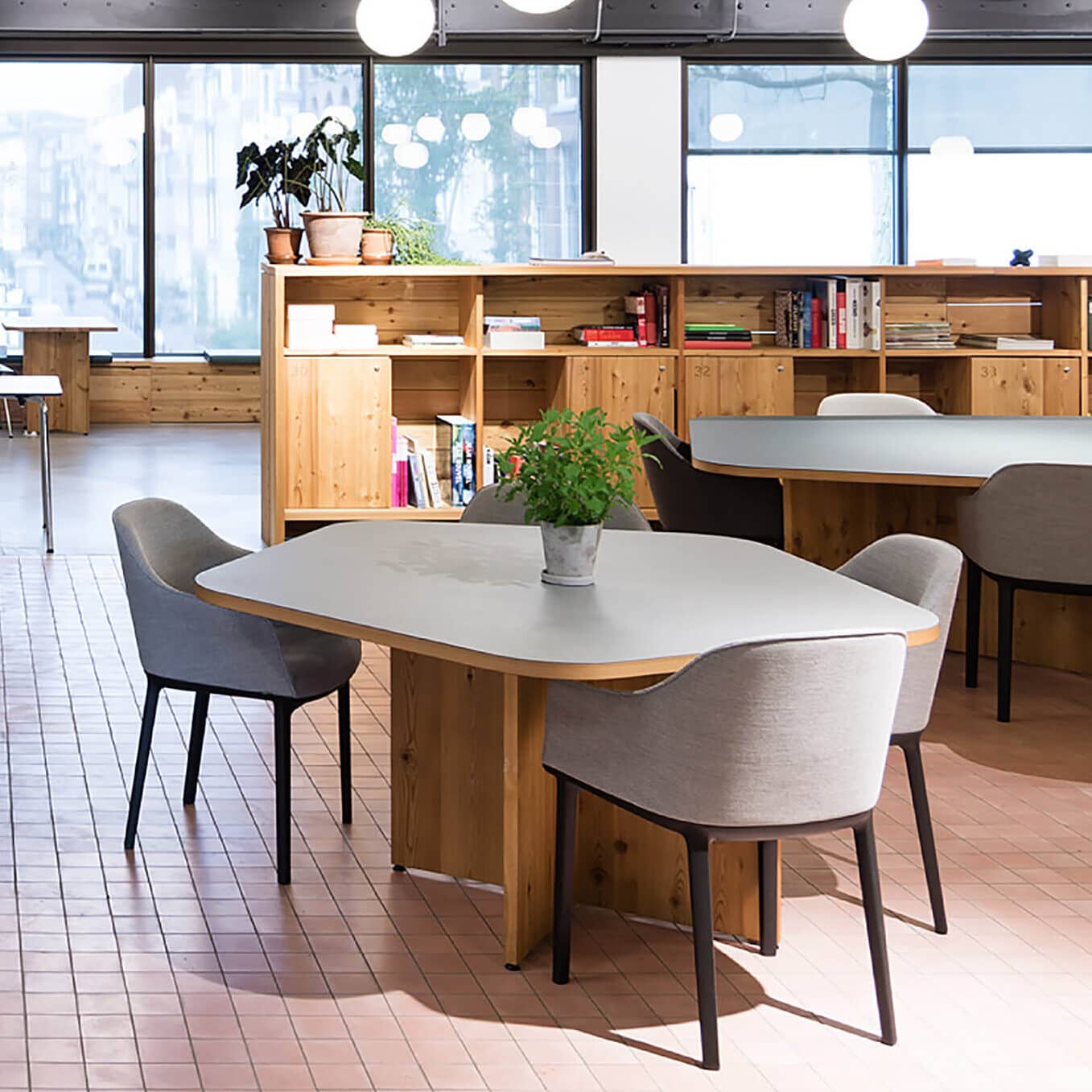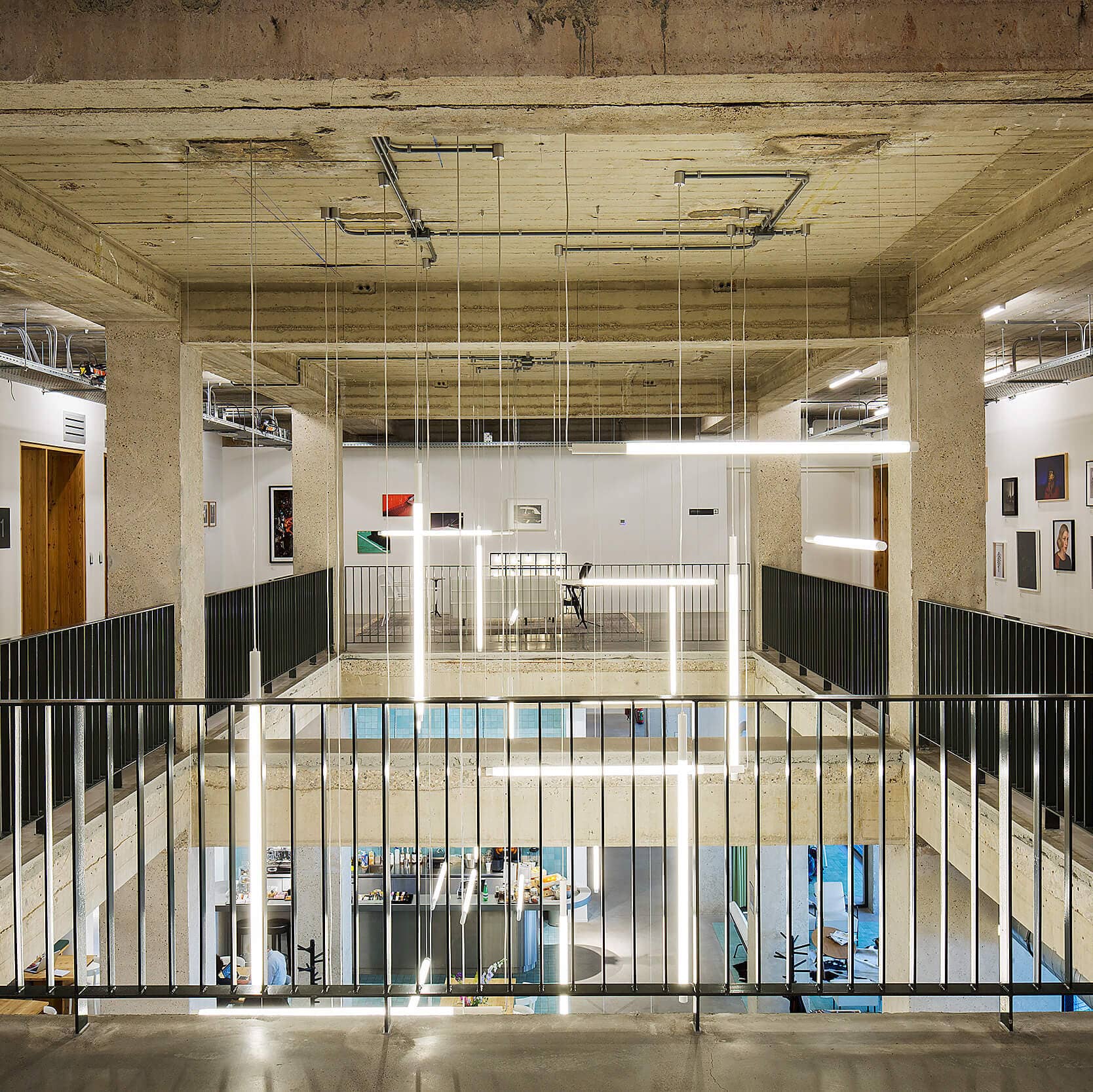 In het ontwerp is de krachtige gevelstructuur, gekenmerkt door de horizontaliteit en de grote glazen puien, behouden. In het interieur is de oorspronkelijke betonstructuur blootgelegd en is door middel van vides een verbinding tussen de verschillende verdiepingen gecreëerd.