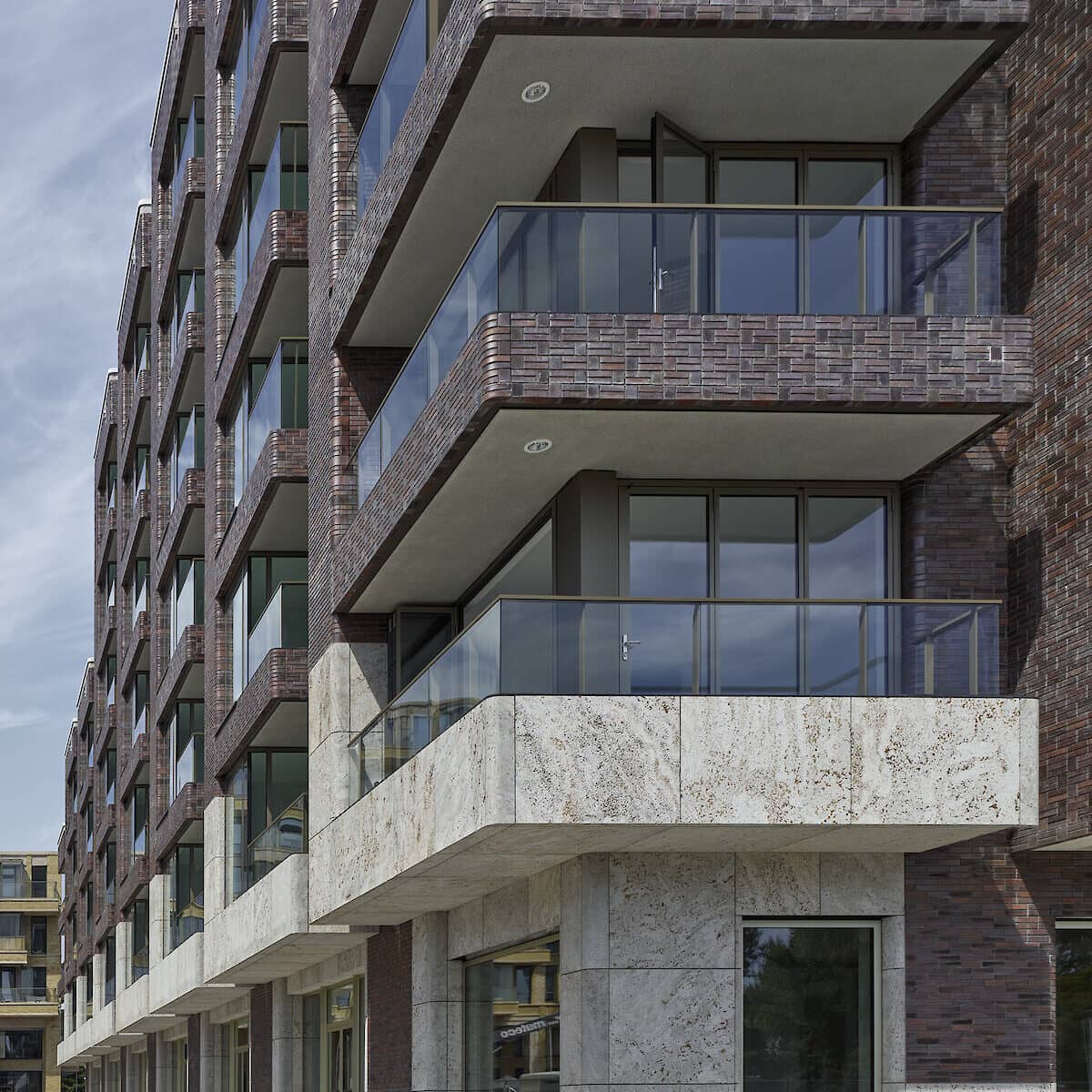 De halfopen blokstructuur van het plan speelt in op de twee stedenbouwkundige tradities van de aangrenzende Rivierenbuurt. Het ‘klassieke’ gesloten bouwblok met een binnenterrein en de ‘moderne’ strokenbouw aan de zuidrand van de Rivierenbuurt die het groen van de binnenhoven met de straten verbindt. Met de kenmerkende afgeronde hoeken, doorlopende balkons en gebouwhoge erkers. Met 3 meter hoge kamers en grote, hoge ramen die veel daglicht binnenlaten en een royaal uitzicht mogelijk maken.